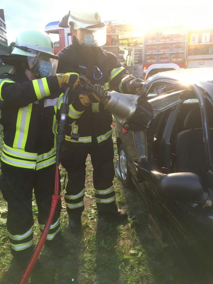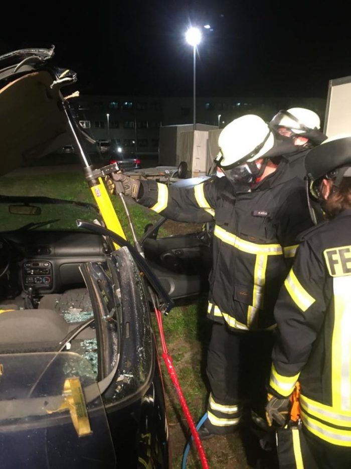 Die Löschgruppe Witterschlick vertiefte verschiedene Rettungstechniken bei Verkehrsunfällen an einem zur Verfügung gestellten Schrottauto. Auf welche Weise kann eine schnelle Zugangsöffnung erfolgen? Wie sieht ein Unterbau zum Stabilisieren und als Widerlager für hydraulische Rettungsgeräte aus? Bei diversen praktischer Übungsszenarien wurde die Vorgehensweise einer Dachöffnung zur achsengerechten Rettung geübt. Alle Übungsteilnehmer hatten bei dieser Übung die Möglichkeit ihr Wissen über die verschiedenen Bedienmöglichkeiten der Rettungsgeräte zu vertiefen. [SiSi]